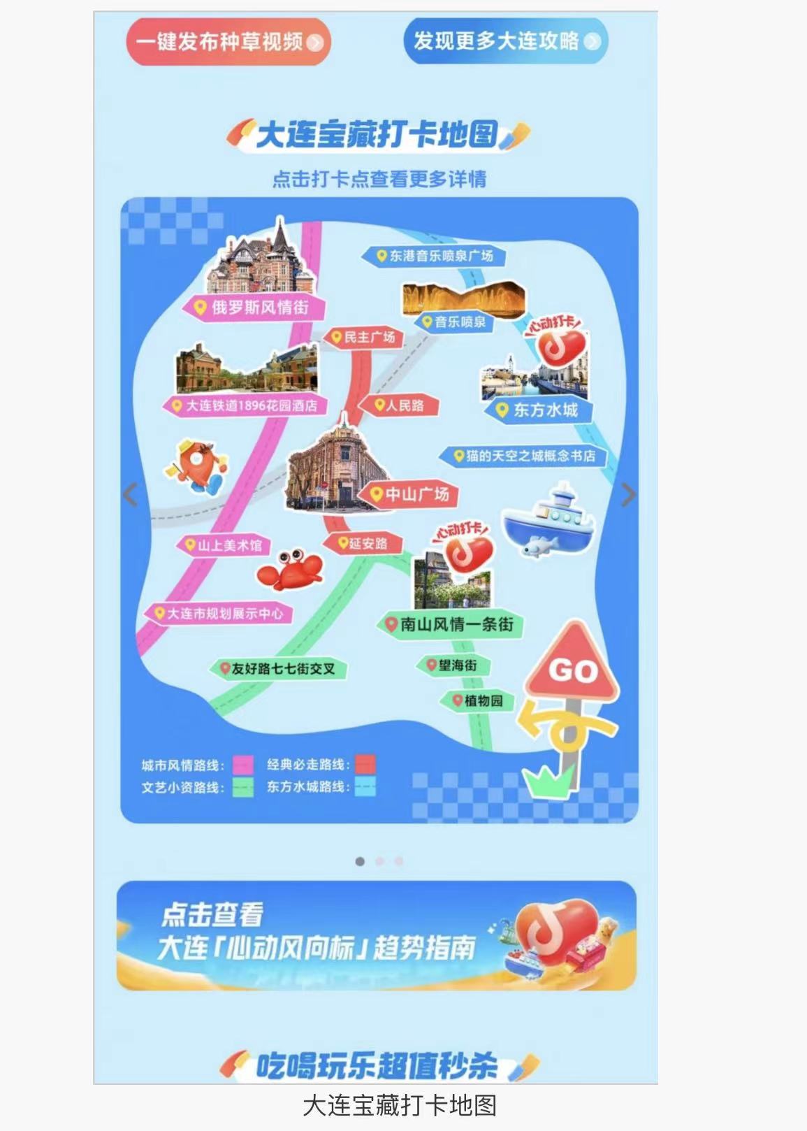 線上推廣方面,大連市文化和旅游局與抖音生活服務(wù)共同搭建“心動(dòng)大連”話題頁(yè)與“活動(dòng)主會(huì)場(chǎng)”頁(yè)面,聚合達(dá)人、用戶、媒體的多樣化內(nèi)容以及本地精選文旅商家,集中推廣大連文旅資源和特色消費(fèi)場(chǎng)景。費(fèi)啟鳴、婁藝瀟、喜劇人大鎖等多位大連籍明星藝人,受邀作為“心動(dòng)大連推薦官”為大連文旅打Call。活動(dòng)將發(fā)起“心動(dòng)直播周”促消費(fèi)專(zhuān)場(chǎng)直播,設(shè)定周播主題,宣傳城市吃喝玩樂(lè)特色內(nèi)容?;顒?dòng)還將結(jié)合大連文旅特色以及中秋節(jié)點(diǎn),發(fā)起“海邊的大連有多浪漫”“中秋來(lái)大連實(shí)現(xiàn)海鮮自由”等熱門(mén)話題造勢(shì)。(抖音)