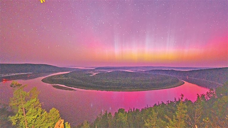 當游客親眼目睹北極光的那一刻,體會的是觸動心靈的震撼?!罢驹谏巾?,當那綠色的光帶緩緩劃過夜空,我仿佛被整個宇宙擁抱?!庇慰蛷埮考拥卣f,“這不僅是視覺上的盛宴,更是心靈上的雙重幸運和幸福?!苯衲?,不少游客在夜幕降臨后,有幸目睹了絢爛的北極光在夜空中舞動,那如夢似幻的場景,讓每一位親歷者都感嘆不已。北極光的出現(xiàn),不僅讓龍江第一灣的自然景觀更加豐富多彩,也讓它成為了無數(shù)人心中向往的夢幻之地。