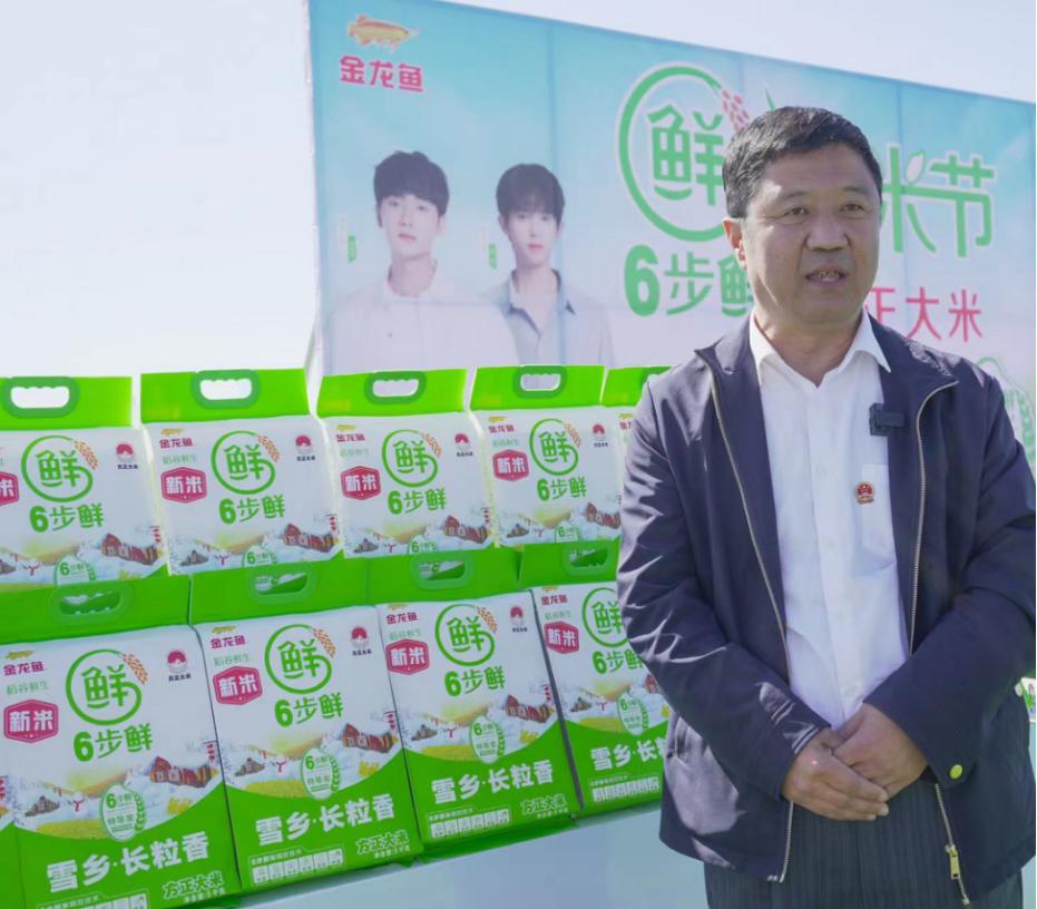 電商直播是今年新米節(jié)上的重頭戲,稻田邊將直播間搬到了現(xiàn)場。張清泉主任面向直播鏡頭,向觀眾們分享方正縣如何搶抓機遇、整合農(nóng)產(chǎn)品資源帶動農(nóng)民增收致富的故事,與觀眾們分享2024年第一把長粒香新米。談到方正,從地理環(huán)境、產(chǎn)業(yè)特色、產(chǎn)地優(yōu)勢等方面為觀眾們詳細介紹了雪鄉(xiāng)長粒香方正大米如何通過金龍魚采用的稻谷“6步鮮米精控技術(shù)”實現(xiàn)從大米到鮮米的跨越。
