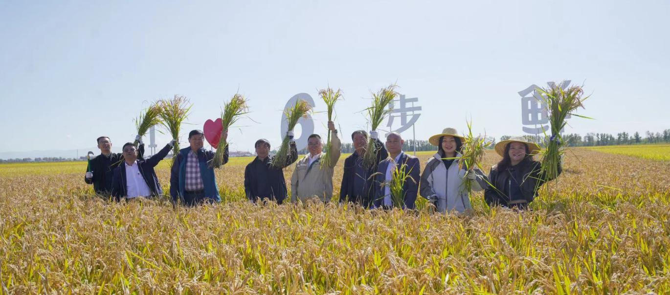 與會嘉賓們一起鮮割第一鐮6步鮮稻谷,體會豐收的喜悅