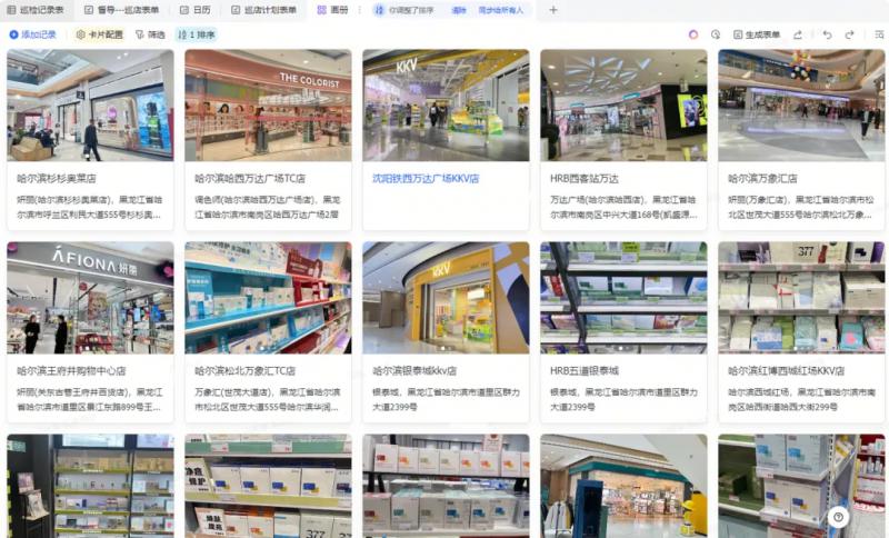 線下巡店工作能最大程度保障各終端貨品銷售質(zhì)量。過(guò)去,由于巡店工作涉及外出出差,巡店照片數(shù)據(jù)手機(jī)端無(wú)法操作整理匯總,影響問(wèn)題處理時(shí)效且增加無(wú)用工作量?,F(xiàn)在敷爾佳運(yùn)用飛書(shū)表單移動(dòng)端操作,隨時(shí)上傳巡店結(jié)果及照片,表格儀表盤視角可以查看數(shù)據(jù)并進(jìn)行一段時(shí)間內(nèi)的環(huán)比、同比分析,基于數(shù)據(jù)分析做任務(wù)下達(dá),一次巡檢從發(fā)現(xiàn)問(wèn)題到整改問(wèn)題的全流程都能包攬,對(duì)于每位巡檢員來(lái)說(shuō),每天至少節(jié)省2.5小時(shí)數(shù)據(jù)統(tǒng)計(jì)時(shí)間,同時(shí)更清晰的了解每個(gè)督導(dǎo)的外出工作情況 。此外,查貨溯源沒(méi)有系統(tǒng)的數(shù)據(jù)存檔,多個(gè)渠道數(shù)據(jù)無(wú)法同步,無(wú)數(shù)個(gè)sheet篩選查詢數(shù)據(jù),容易出錯(cuò)。現(xiàn)在,運(yùn)用多維表格協(xié)同操作,多個(gè)維度查看所需數(shù)據(jù),所有查貨情況能被沉淀和實(shí)時(shí)查看。