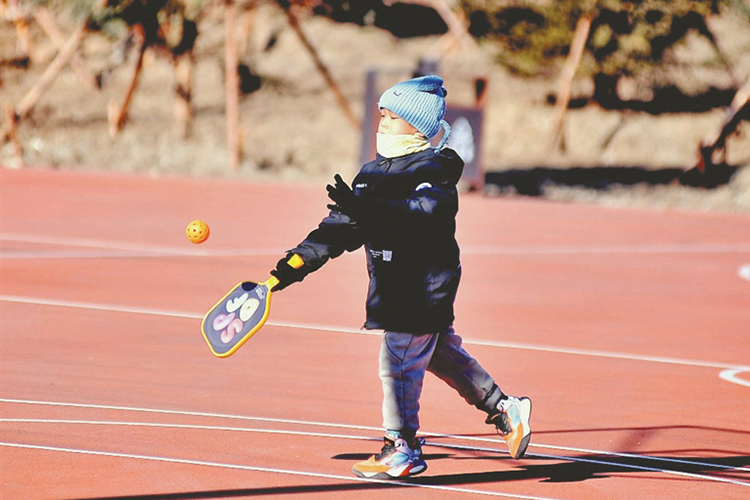 孩子在公園內(nèi)打球。本報記者 蘇強攝