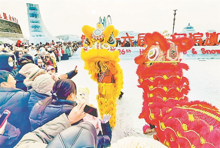 2日,農(nóng)歷正月初五。哈爾濱冰雪大世界許多游客在參觀游玩,走在美麗的冰雕雪塑間,如同進(jìn)入一個(gè)童話世界。春節(jié)期間,人們不僅可以觀賞到美輪美奐的冰雪景觀,還可以看到精彩的舞獅、舞蹈表演,感受濃濃的節(jié)日氛圍。
