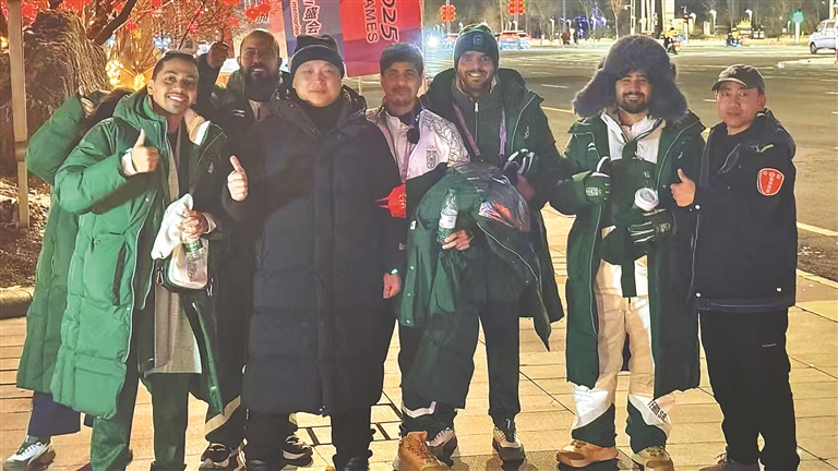 當(dāng)晚,新區(qū)公交公司工作人員在冰雪大世界執(zhí)行轉(zhuǎn)運接駁任務(wù)時發(fā)現(xiàn),一群外國運動員在寒風(fēng)中焦急地徘徊。工作人員隨即用翻譯軟件與他們溝通,得知他們是參加亞冬會的沙特阿拉伯運動員,由于語言不通打不到出租車,無法返回居住酒店。面對這一情況,新區(qū)公交公司立即啟動應(yīng)急預(yù)案,安排一輛備勤公交車專門護送運動員安全返回酒店。