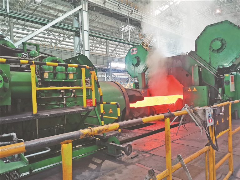 建龍北滿特鋼特冶鍛造廠鍛造作業(yè)區(qū)精鍛機正在鍛造鋼坯。本報記者吳玉璽攝