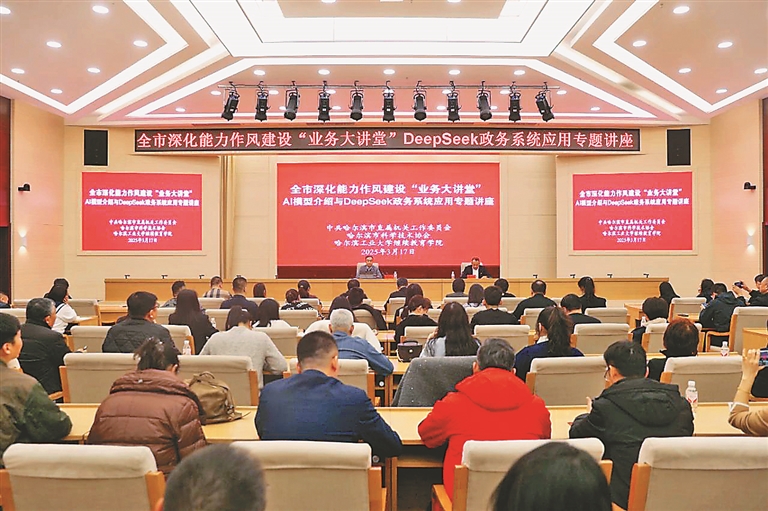 本報訊(記者 趙一諾)為加快提升機關(guān)干部數(shù)字素養(yǎng)與智能技術(shù)應用能力,助力政務工作智能化轉(zhuǎn)型升級,近日,哈爾濱市直機關(guān)工委、哈爾濱市科協(xié)、哈爾濱工業(yè)大學繼續(xù)教育學院聯(lián)合舉辦哈爾濱市深化能力作風建設(shè)“業(yè)務大講堂”——AI模型介紹與DeepSeek政務系統(tǒng)應用專題講座。哈爾濱市直機關(guān)和部分區(qū)縣共200余名機關(guān)干部參加學習。