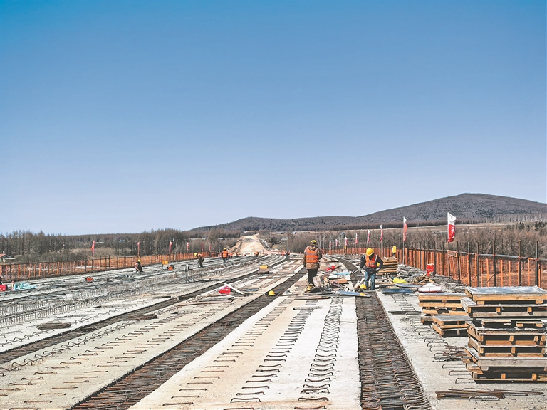 日前,在G1111鶴哈高速苔青至伊春段梅花河大橋的施工現(xiàn)場(chǎng),數(shù)十名工人正熱火朝天地進(jìn)行橋梁的鋼構(gòu)件加工和安裝工作。鶴哈高速苔伊項(xiàng)目3月16日正式復(fù)工復(fù)產(chǎn),為完善龍江高速公路網(wǎng)絡(luò)按下“加速鍵”。