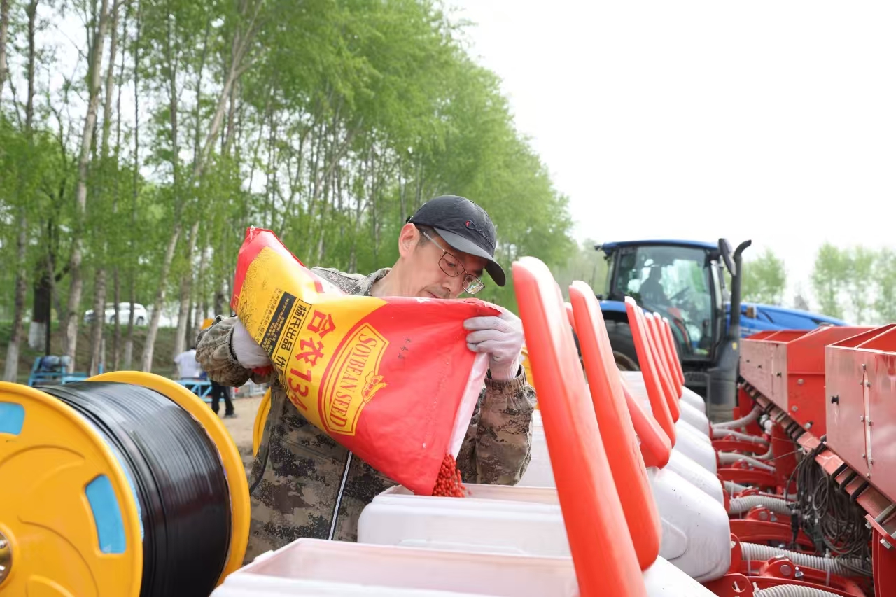 在北林區(qū)大豆大面積單產(chǎn)提升示范區(qū),工作人員熟練地操作著設(shè)備,金黃的大豆種子源源不斷地進入拌種機,經(jīng)過與精心調(diào)配的種衣劑充分混合,一顆顆種子都披上了一層均勻的“防護衣”,為大豆高產(chǎn)穩(wěn)產(chǎn)和黑土地保護注入新動能。