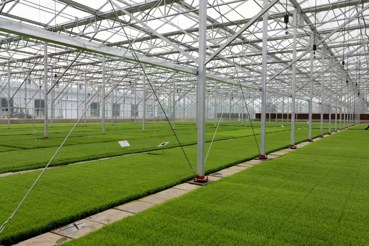 盛昌種子繁育有限公司高級農(nóng)藝師盧國臣介紹,秧苗長得好,離不開智能化育苗溫室這個“智能管家”。棚室里的電子顯示屏可以實時監(jiān)測到溫度、濕度、光照、土壤酸堿度和微量元素等數(shù)據(jù)信息,風控系統(tǒng)、采光系統(tǒng)、噴淋系統(tǒng)隨時進行智能調(diào)控,5G技術(shù)的應用使大棚的管理更加高效、精準,確保秧苗始終處于最適宜的生長環(huán)境中?!耙酝鶄鹘y(tǒng)育秧,主要靠人工經(jīng)驗判斷,效率低不說,還容易受到天氣等因素影響,導致秧苗質(zhì)量參差不齊?,F(xiàn)在有了這套智能化育秧系統(tǒng),不僅節(jié)省了大量人力,而且育出的秧苗出芽率高、生長整齊,為水稻高產(chǎn)打下了堅實基礎(chǔ)?!北R國臣說。