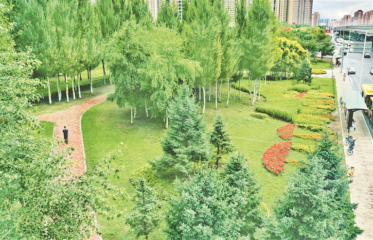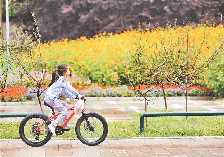 3日,哈爾濱市道里區(qū)陽明灘大道附近,行人從“口袋公園”旁走過。今年,當?shù)匦陆硕鄠€“口袋公園”,占地面積數(shù)萬平方米。公園里,樹木生長茂盛,鮮花爭奇斗艷,小道從園中穿過,道旁設(shè)有座椅、健身器材等。許多附近居民到這里休閑、賞景。