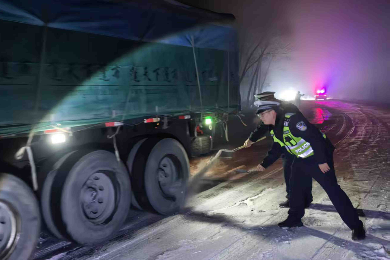 黑龍江經(jīng)濟(jì)網(wǎng)訊(李寶 劉昌龍 記者梁新立)近日,五大連池市轄區(qū)遭遇持續(xù)低溫降雪天氣,部分國省縣鄉(xiāng)道路出現(xiàn)積雪結(jié)冰,大型車輛行駛困難,通行風(fēng)險(xiǎn)顯著升高。為保障道路暢通與行車安全,五大連池市公安局反恐與交巡特警大隊(duì)迅速啟動(dòng)冰雪天氣應(yīng)急預(yù)案,積極應(yīng)對(duì),組織警力開展路面防滑處置工作,全力保障群眾出行安全。