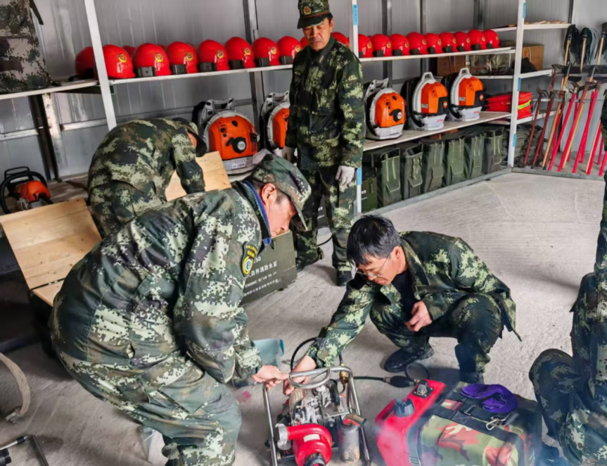 超前部署強基礎,筑牢防控“先手棋”。充分利用準備之冬”黃金期,細化完善23項防滅火預案及 26 項工作流程圖,構建起層次分明、流程順暢的防控指南。全年開展指揮員、瞭望員、無人機操作等各類培訓25次,覆蓋893名干部職工,實現防控隊伍專業(yè)能力全面提升。同時完成110臺車輛、380臺套滅火機具、241臺套通訊設備的全面檢修,物資儲備到位率、設備完好率均達100%。350 人專業(yè)消防大隊、22座瞭望塔、43個管護站等力量精準布防,形成“預案、宣傳、機械、物資、隊伍、人員”六到位的防控格局,為實戰(zhàn)奠定堅實基礎。