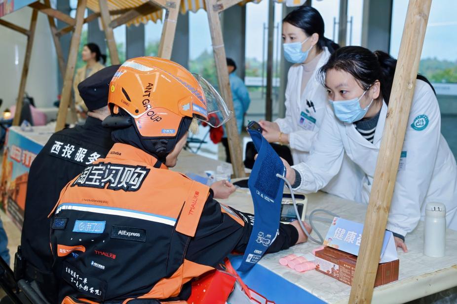 秋冬季節(jié)多發(fā)流感,全國各地、各級(jí)工會(huì)等主管部門聯(lián)合淘寶閃購,持續(xù)開展暖冬物資發(fā)放、免費(fèi)體檢等活動(dòng)。在貴陽、銀川、溫州、武漢等城市,騎士日活動(dòng)還設(shè)置了專門的體檢車,為騎士提供便捷的健康檢查,在南京、成都等地開展義診。