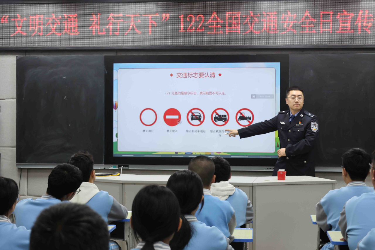 活動中,宣傳民警結(jié)合廣大師生出行特點及轄區(qū)冬季道路交通實際,通過PPT演示、事故案例剖析及以案說法等方式,用通俗易懂的語言講解交通法規(guī)核心要點及冬季出行注意事項。重點圍繞步行過馬路“一停二看三通過”、騎行年齡限制、“一盔一帶”安全防護及汽車盲區(qū)規(guī)避等關(guān)鍵知識進行全面細致講解,并結(jié)合典型交通事故案例,直觀揭示酒后駕駛、闖紅燈、騎行不戴頭盔等違法行為的嚴重危害,讓師生們深刻認識“生命至上”的安全理念,進一步增強安全防范意識,時刻遵守交通法規(guī),不斷提高自我保護能力。