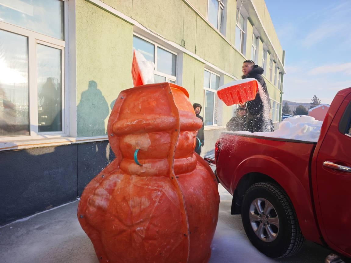 林場(chǎng)職工正在堆雪人(李輝 攝)