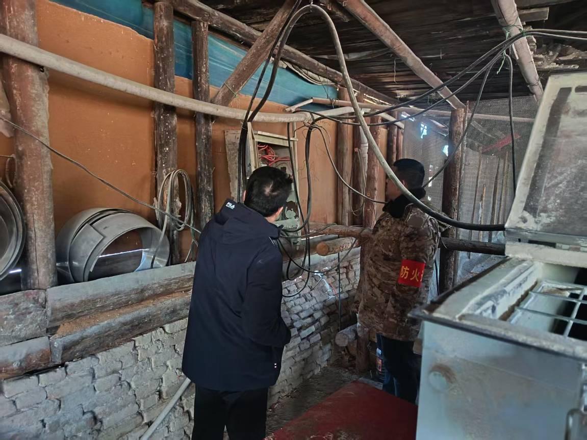 排查過程中,工作人員深入一線、全域摸排,重點覆蓋場區(qū)住戶、管護(hù)站、辦公區(qū)、養(yǎng)殖戶等關(guān)鍵區(qū)域。在場區(qū)住戶和辦公區(qū),細(xì)致排查用電線路、取暖設(shè)施、燃?xì)馐褂玫入[患,檢查消防器材配備及有效性,杜絕線路老化、私拉亂接、易燃物堆放等問題;在養(yǎng)殖戶區(qū)域,重點核查飼草堆放、飼料加工區(qū)防火措施,現(xiàn)場簽訂防火責(zé)任告知書,提醒養(yǎng)殖戶規(guī)范用火用電。此外,同步排查倉庫、物資儲備點等重點部位,確保排查不留死角、不漏盲區(qū)。