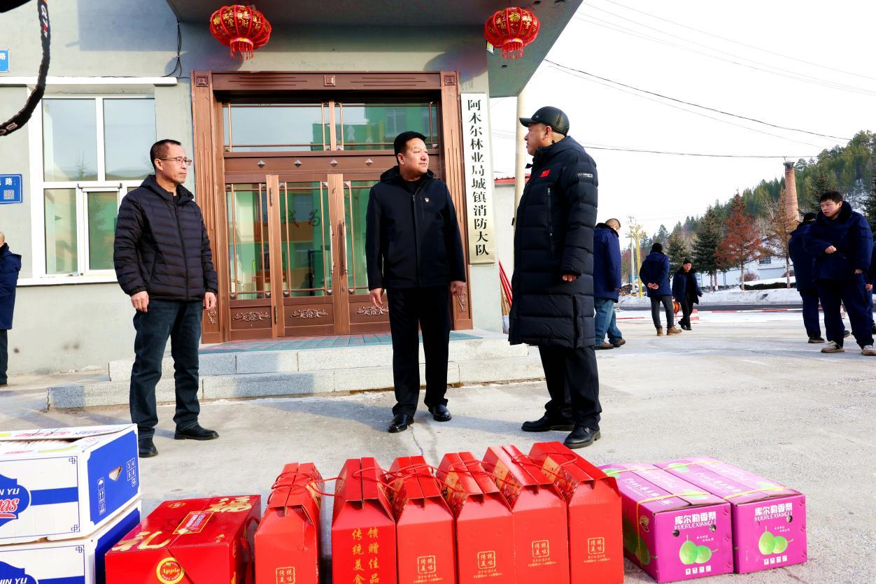 黑龍江經(jīng)濟(jì)網(wǎng)訊(王力)除夕佳節(jié),萬(wàn)家團(tuán)圓。2月16日,阿木爾林業(yè)局黨委委員、工會(huì)主席胡長(zhǎng)清,林業(yè)局副局長(zhǎng)孫乃彬帶隊(duì),帶著精心準(zhǔn)備的慰問(wèn)品,先后前往城鎮(zhèn)消防大隊(duì)、環(huán)衛(wèi)隊(duì)、物業(yè)公司、阿木爾森林分局、阿木爾鎮(zhèn)政府等多個(gè)一線(xiàn)單位,走訪(fǎng)慰問(wèn)春節(jié)期間堅(jiān)守崗位的干部職工、公安干警及基層工作人員,將黨組織的深切關(guān)懷與新春祝福送到堅(jiān)守一線(xiàn)人員的心坎上。