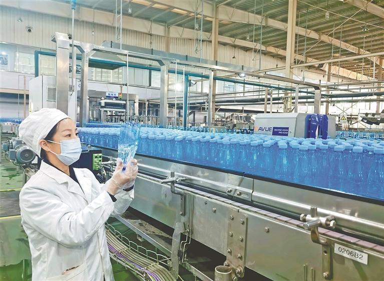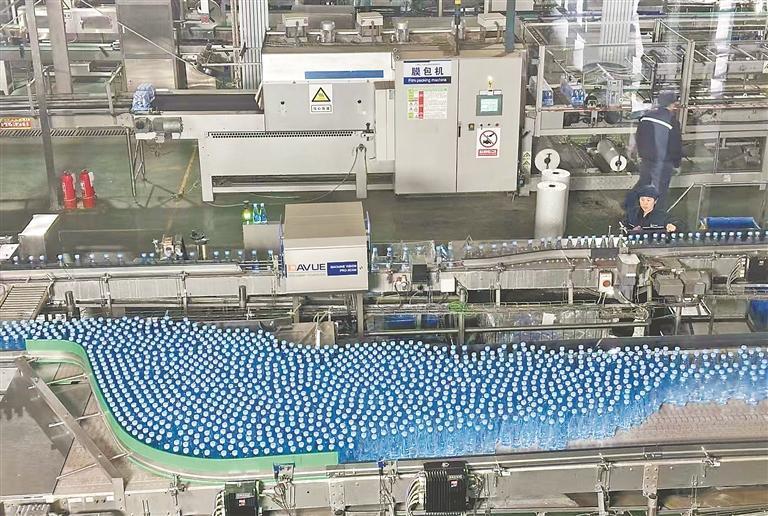 “吹瓶、灌裝、旋蓋一體機(jī)是我們生產(chǎn)線上最有含金量的設(shè)備,瓶坯經(jīng)過(guò)高溫加熱、壓縮空氣吹制,再完成灌裝、旋蓋,全程無(wú)菌操作,確保每一滴水都純潔無(wú)瑕?!鄙a(chǎn)車(chē)間主任劉恒介紹,該設(shè)備生產(chǎn)能力可達(dá)每秒10瓶,搭配全新的視覺(jué)檢測(cè)儀、稱(chēng)重機(jī)和每分鐘可打包30箱產(chǎn)品的箱包機(jī),讓生產(chǎn)效率與產(chǎn)品標(biāo)準(zhǔn)雙提升。
