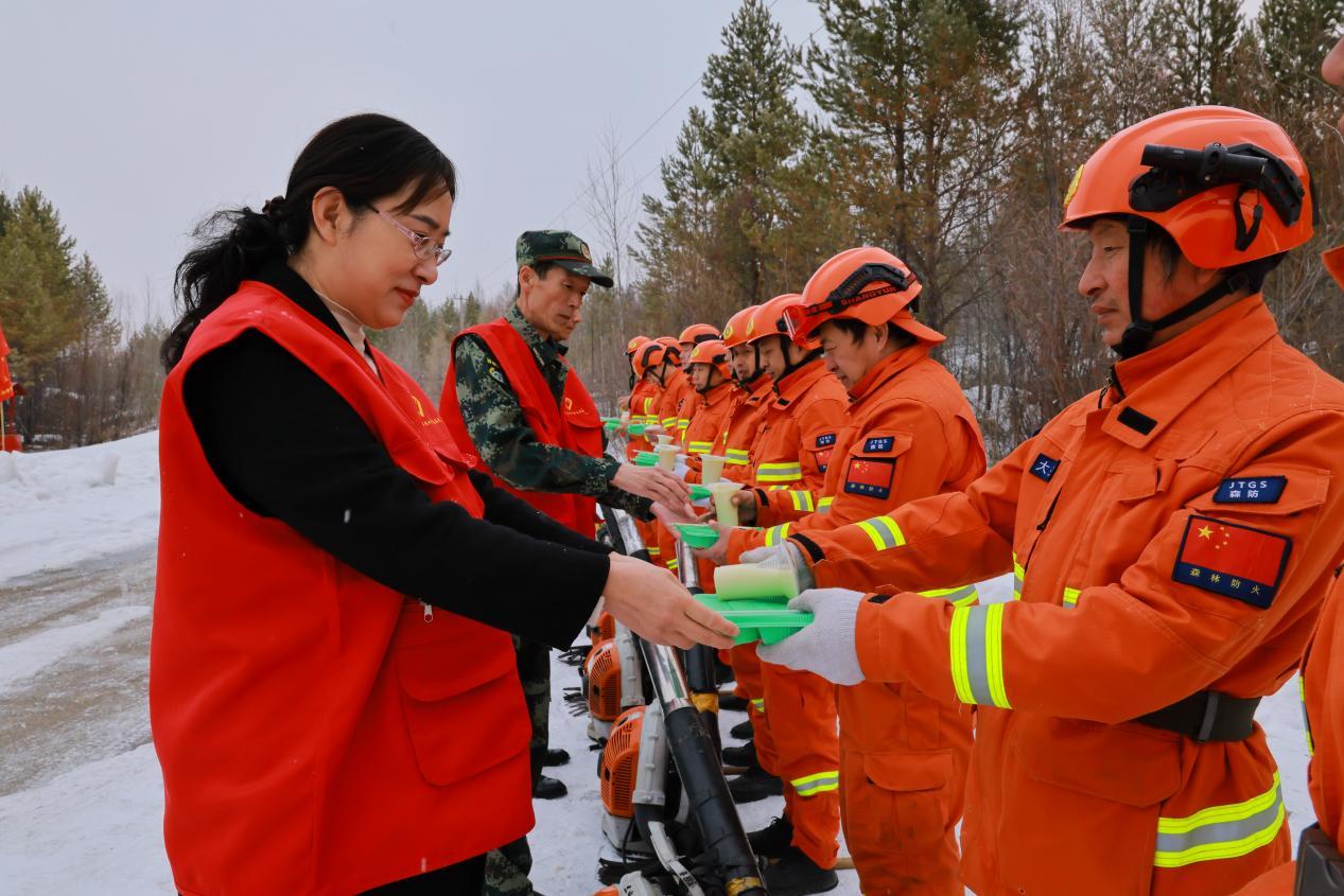 一線人員堅守崗位、不辭辛勞,后方保障溫暖人心、鼓舞斗志。在森林衛(wèi)士們奮戰(zhàn)一線的同時,林業(yè)局機關(guān)黨委積極行動,以主題黨日活動為載體,組織干部職工化身志愿者,將熱氣騰騰的餃子和豆?jié){送到一線值守人員手中,暖心的慰問與貼心的保障,讓堅守在崗位上的“森林衛(wèi)士”倍感溫暖,極大地提振了隊伍士氣。森林消防一大隊隊員梁光輝感動地說道:“感謝局領(lǐng)導的關(guān)愛,我們心里特別溫暖。清明有我們在崗,一定全力以赴,堅決打贏平安清明戰(zhàn)役!”