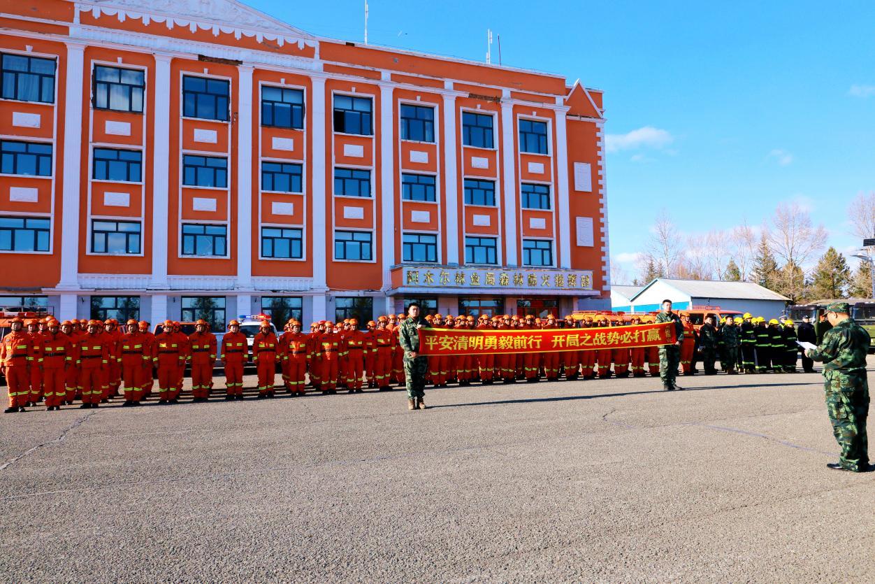 阿木爾林業(yè)局專業(yè)撲火隊員以飽滿的精神狀態(tài)投入到打贏“平安清明”戰(zhàn)役中來,林業(yè)局防火辦在作戰(zhàn)役動員部署(王力 攝)